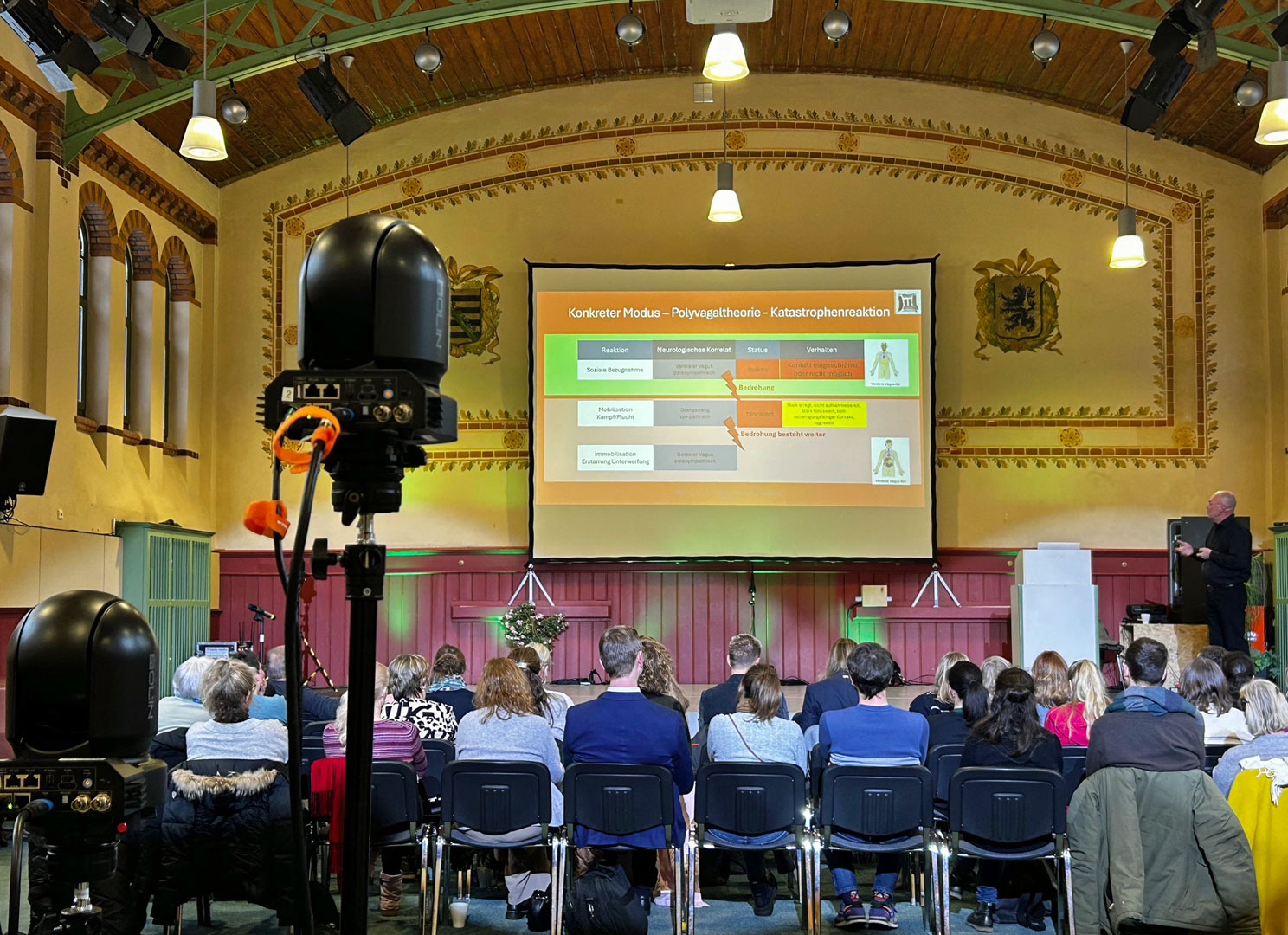 Wegen der hohen Komplexität reichte die Zeit leider nicht mehr für ausführliche Beispiele aus der Praxis. Besonders hervorzuheben sind seine Einbeziehung der Polyvagaltheorie als ein Denkmodell und die Betonung sicherer sozialer Beziehungen für psychische und physische Gesundheit.